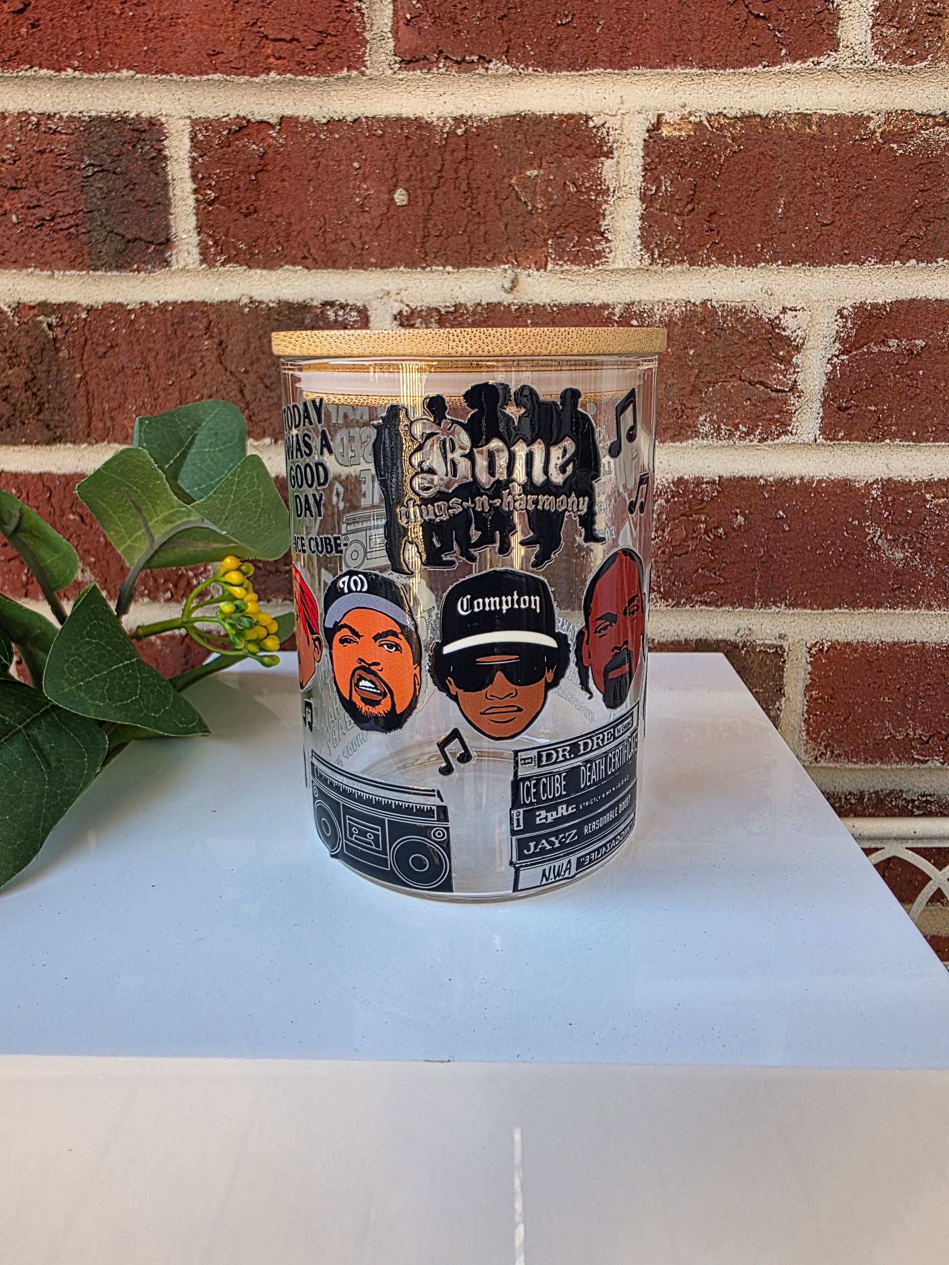 Sip like it’s the golden era of hip-hop! This 15 oz glass cup with bamboo lid and plastic straw pays tribute to the icons — Bone Thugs-N-Harmony, Ice Cube, Snoop Dogg, and Tupac. Whether you’re bumpin’ beats or brewing coffee, this cup keeps your style as classic as your playlist.