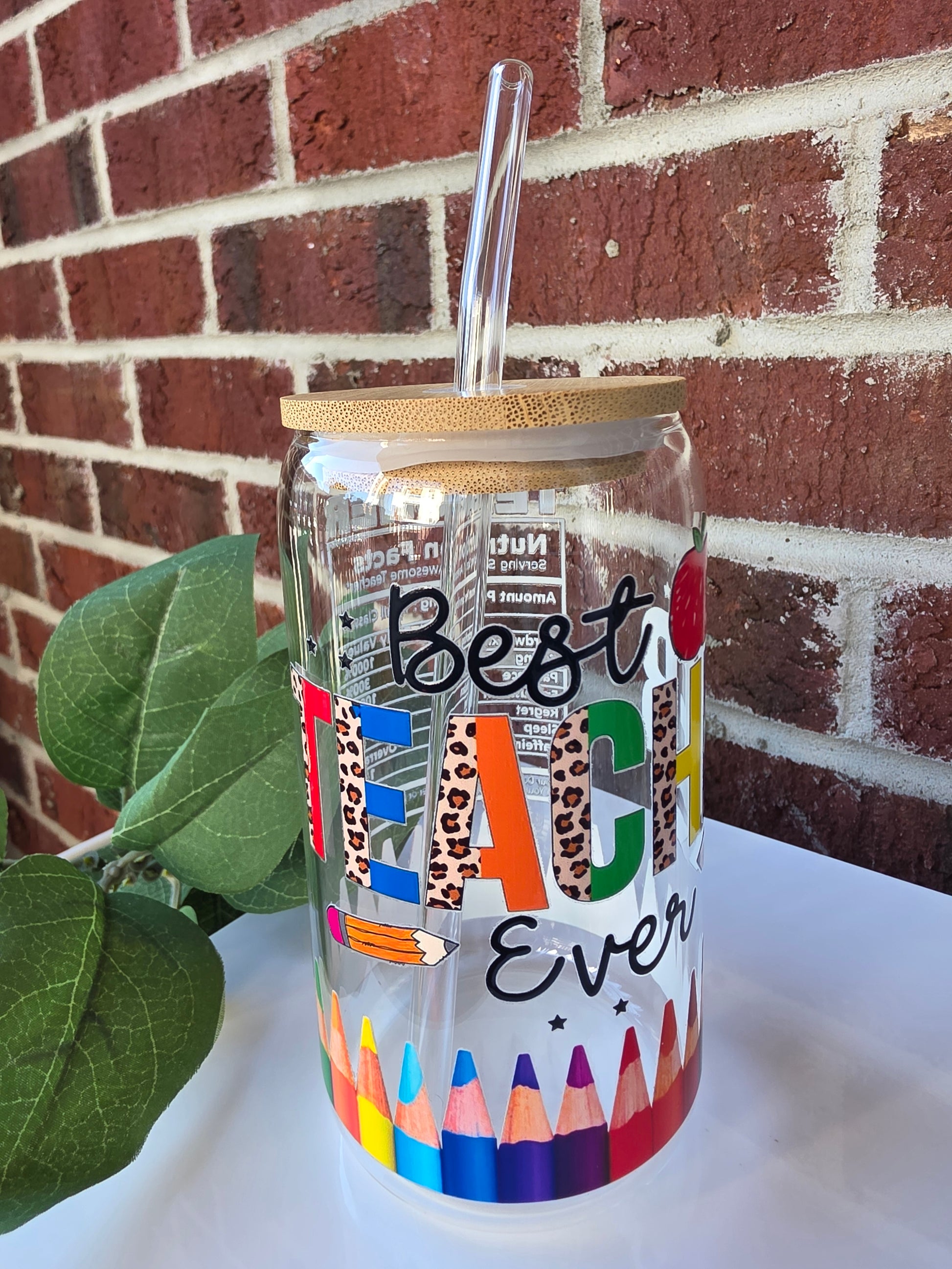 Celebrate the educators who make a difference with our 16 oz “Best Teacher Ever” Can Glass Cup – the perfect blend of practical and heartwarming! Featuring a clean, modern design with bold lettering, this clear can-shaped glass is a daily reminder of appreciation for the ones who inspire, guide, and teach with passion.