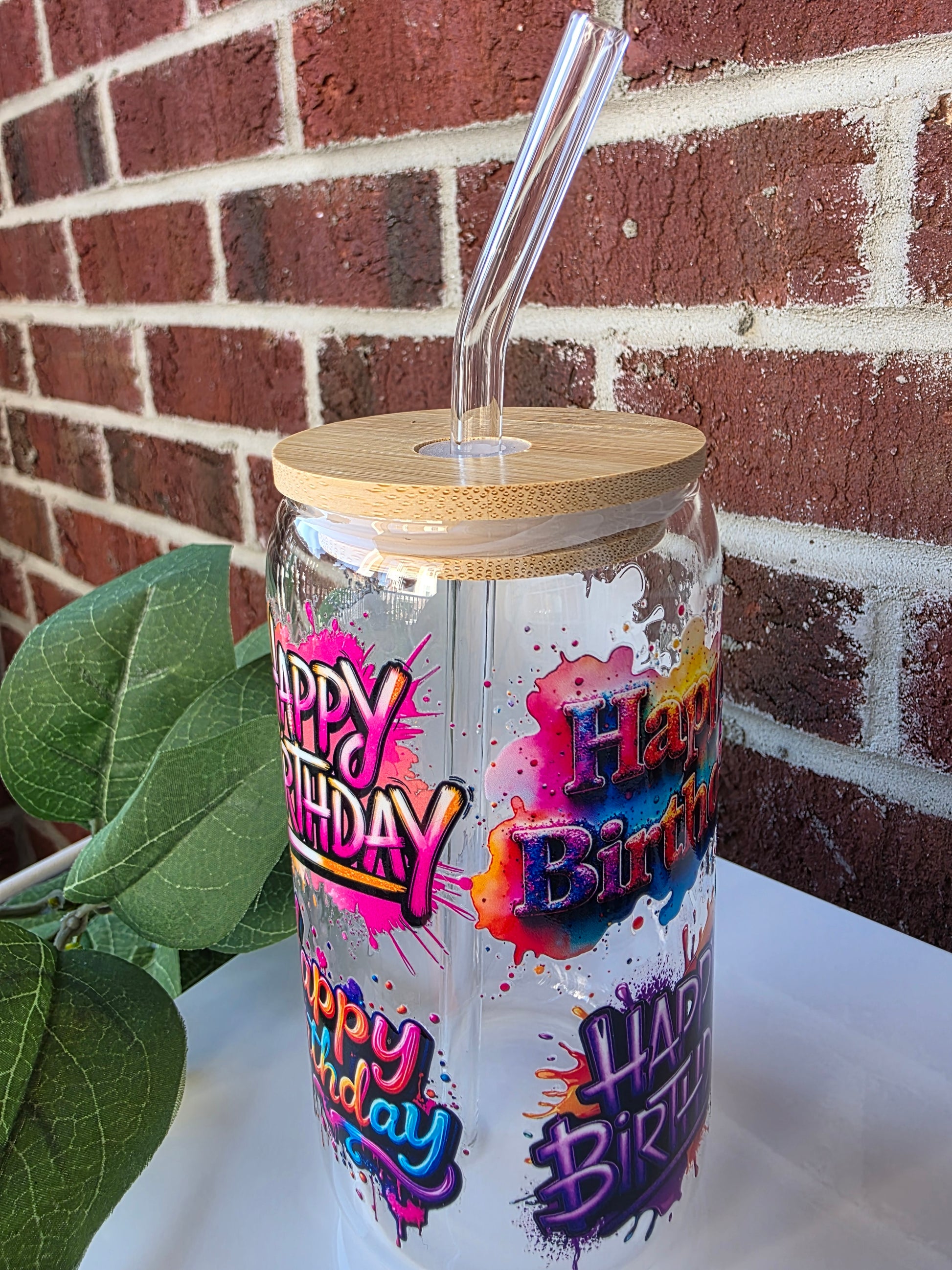 Celebrate in color with our 16oz beer can glass — featuring a bamboo lid, reusable glass straw, and a vibrant birthday wrap that brings the party to every sip. Whether it's punch, cold brew, or bubbly, this cup adds the perfect pop of fun to any birthday bash! Reusable, giftable, and totally unforgettable.
