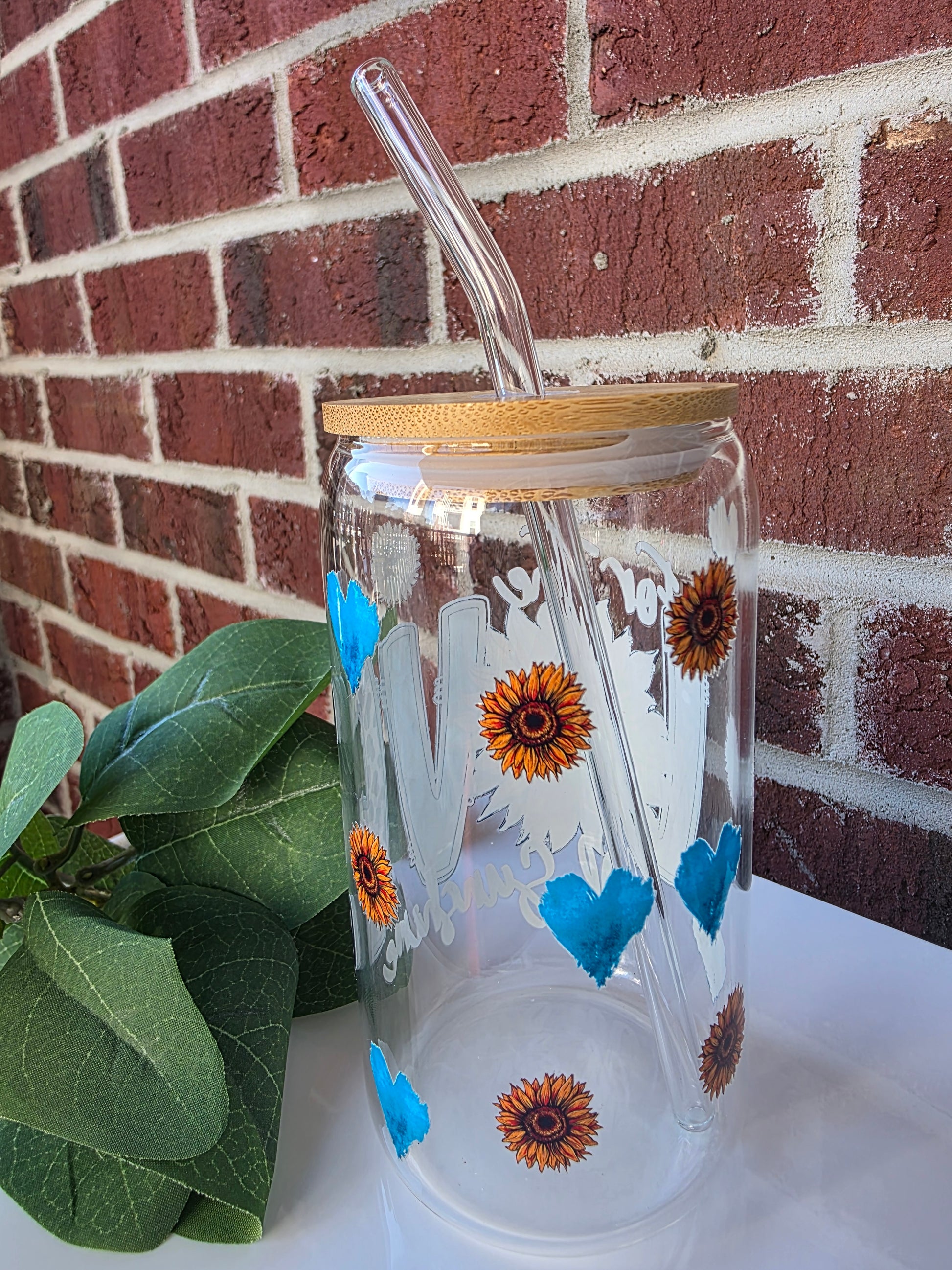 Bring a little sunshine to every sip with our 16oz beer can glass — featuring a bamboo lid, glass straw, and a vibrant wrap that radiates good vibes. Perfect for iced drinks, fresh juices, or anything that tastes better under the sun.